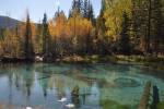 Бирюзовая Катунь в сентябре-октябре – именно осенью вода горной реки Катунь становится необыкновенно бирюзового цвета на фоне золотых гор. Белый известняк и песчаник зеленоватого оттенка, преломление солнечного света сквозь чистейшую воду без примесей и взвесей, преимущественно родниковое питание осенью обуславливает это уникальное явление.