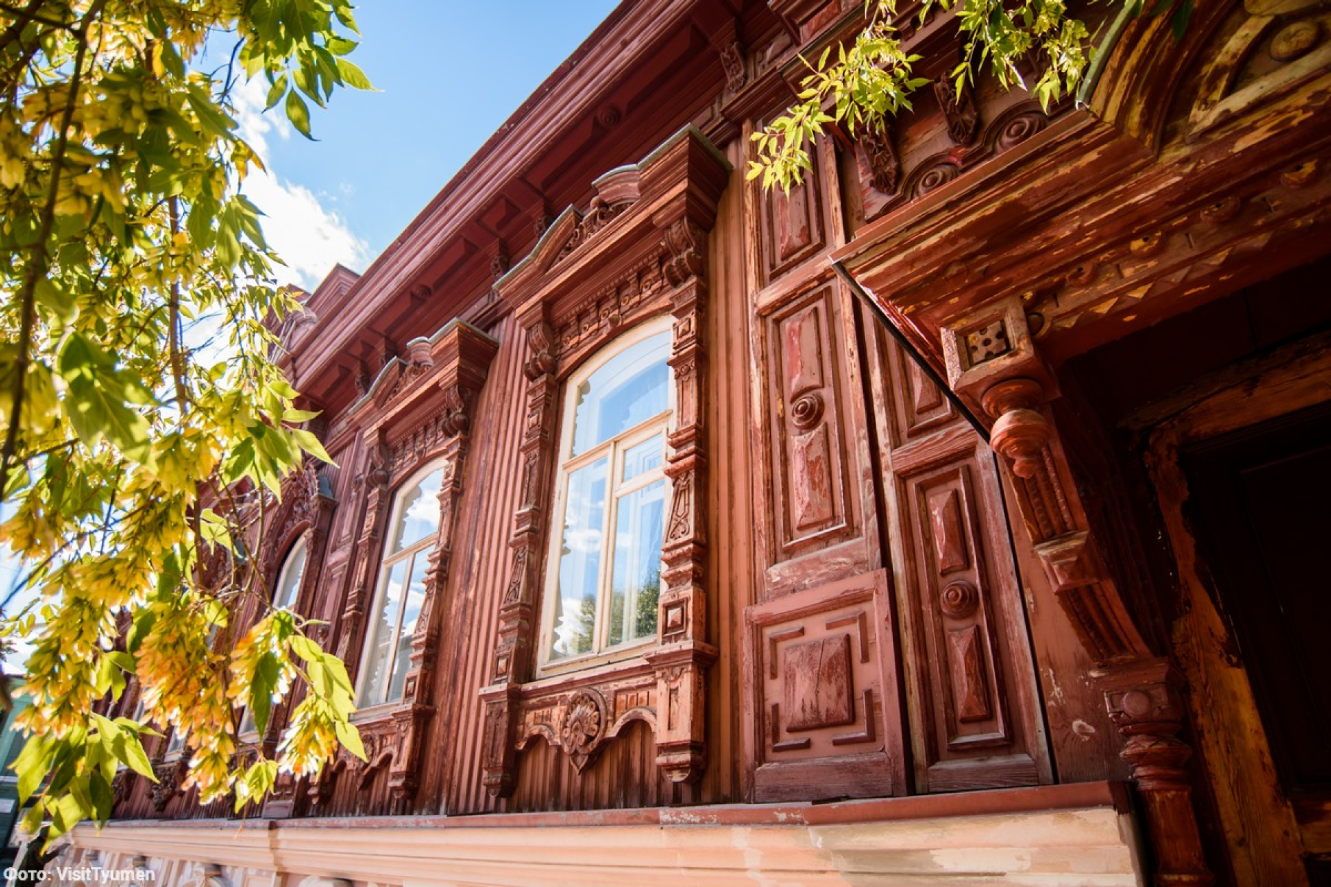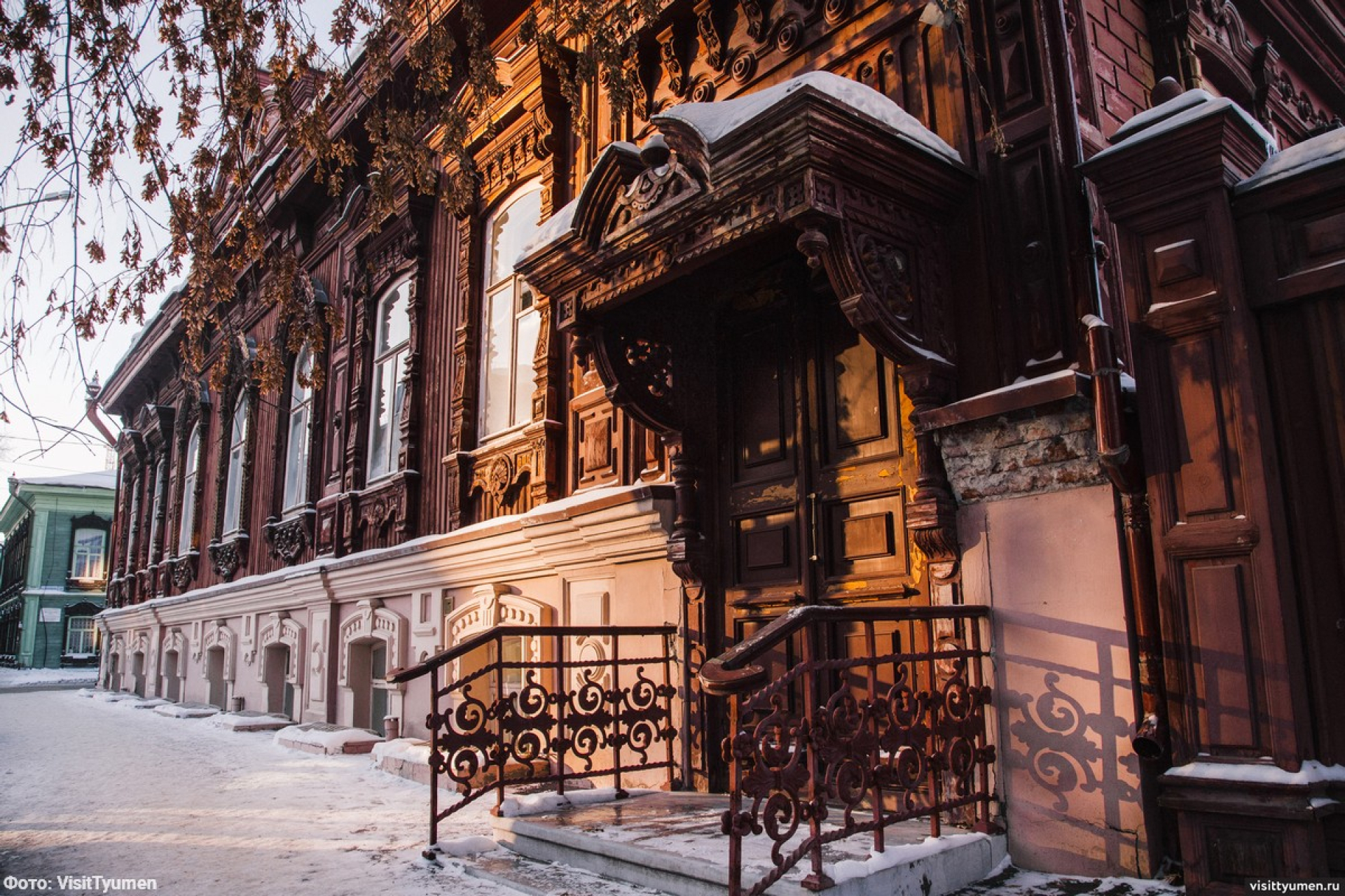 Дом Чираловых. Кон. XIX в., резьба 1915. «Деревянное барокко» (объемная, накладная и пропильная). Сергей Степ. Чиралов – владелец кожевенного завода, его дочери Виринея и Филанида. В 2018 горел, восстановлен. Ныне ресторация «Тургенев».