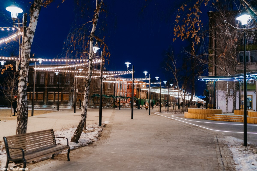 Гостиный двор. 1837-1848, тобольский арх. А.Суворов (проект 1822 М.Малышева). Половина не была построена. После 1904 перестроен в казарму, аркада заложена. Ныне Тюменская государственная академия культуры, искусств и социальных технологий.